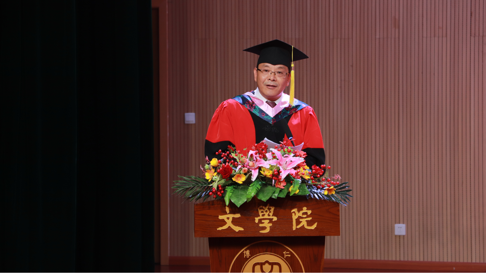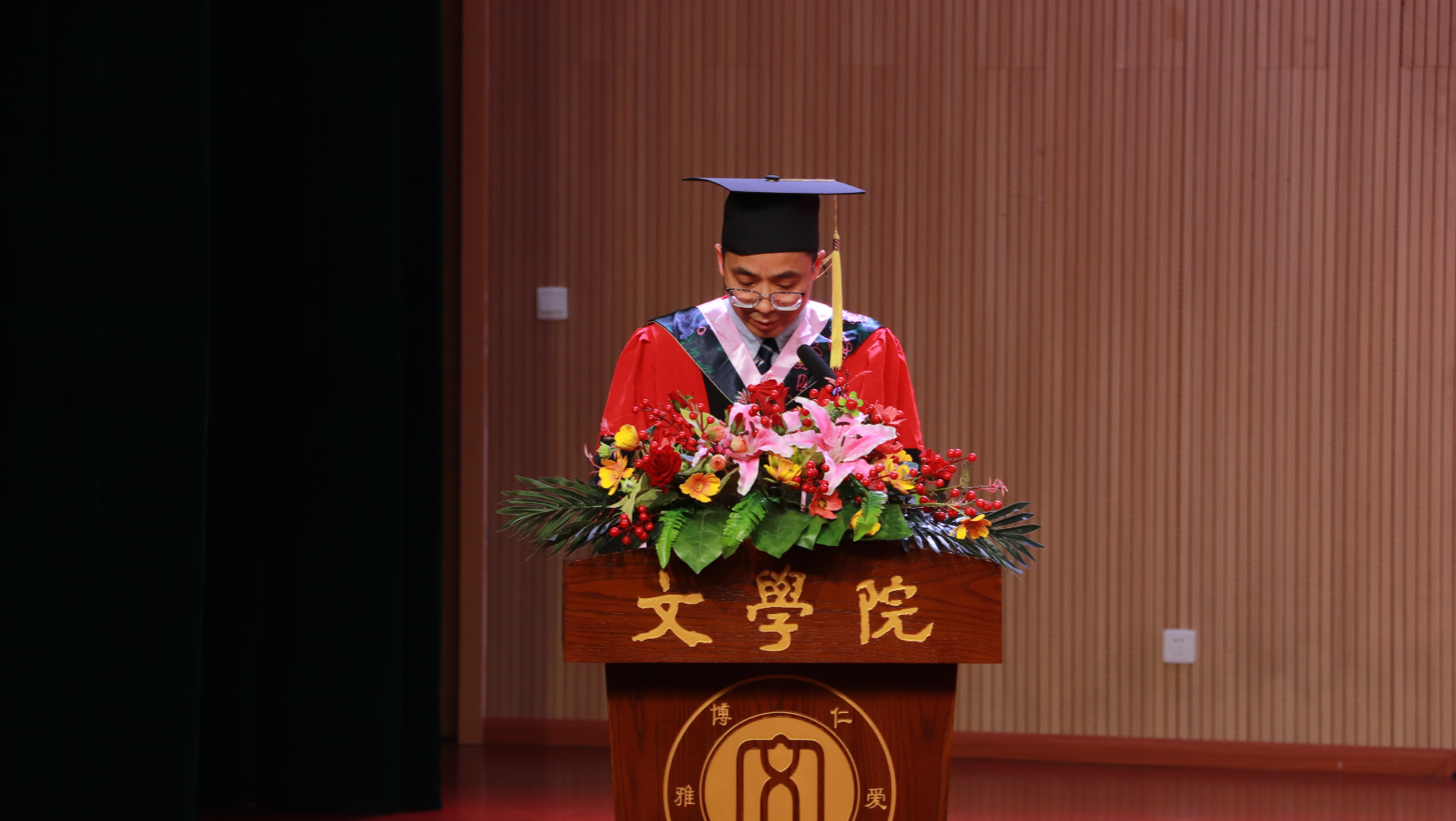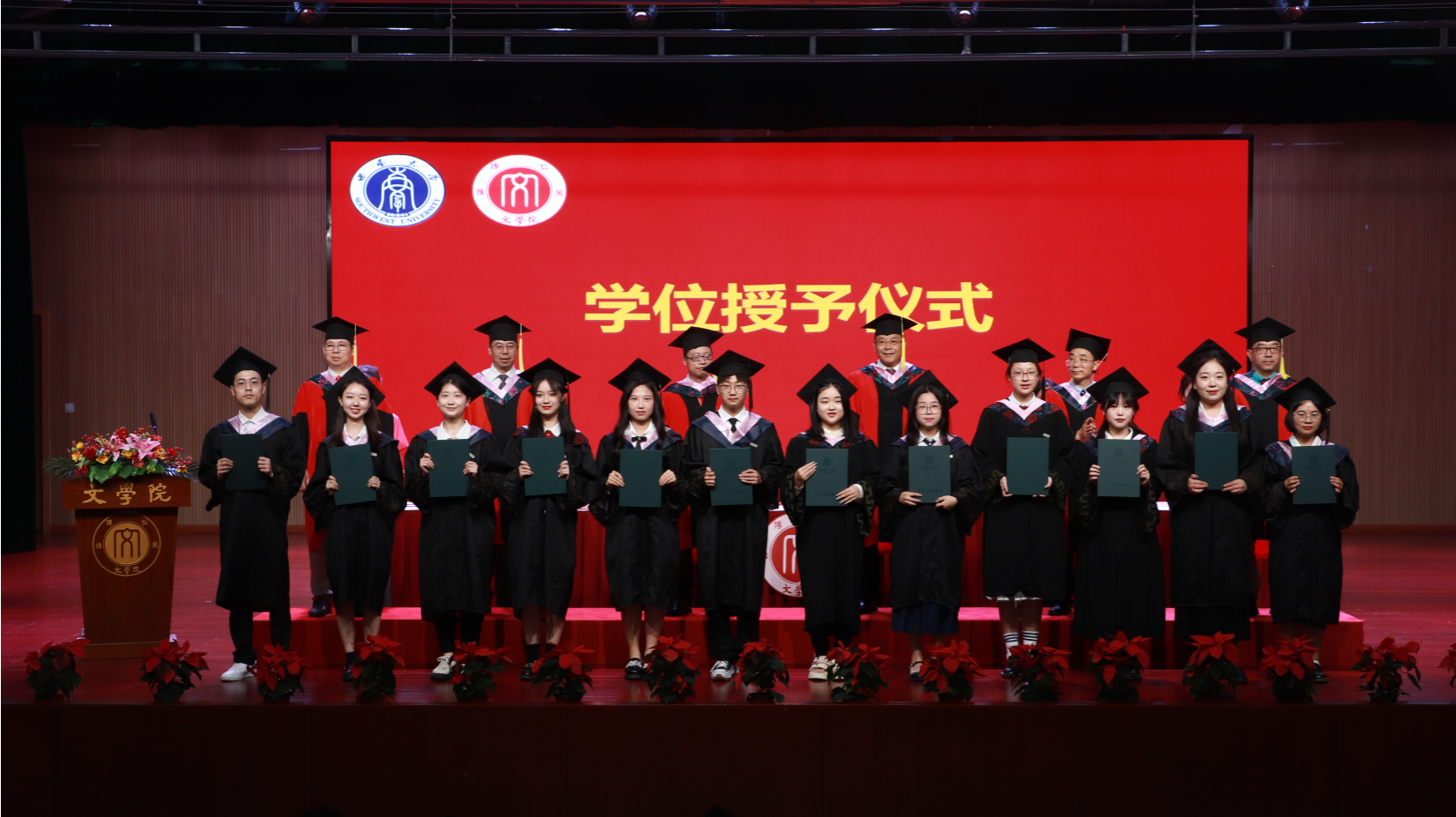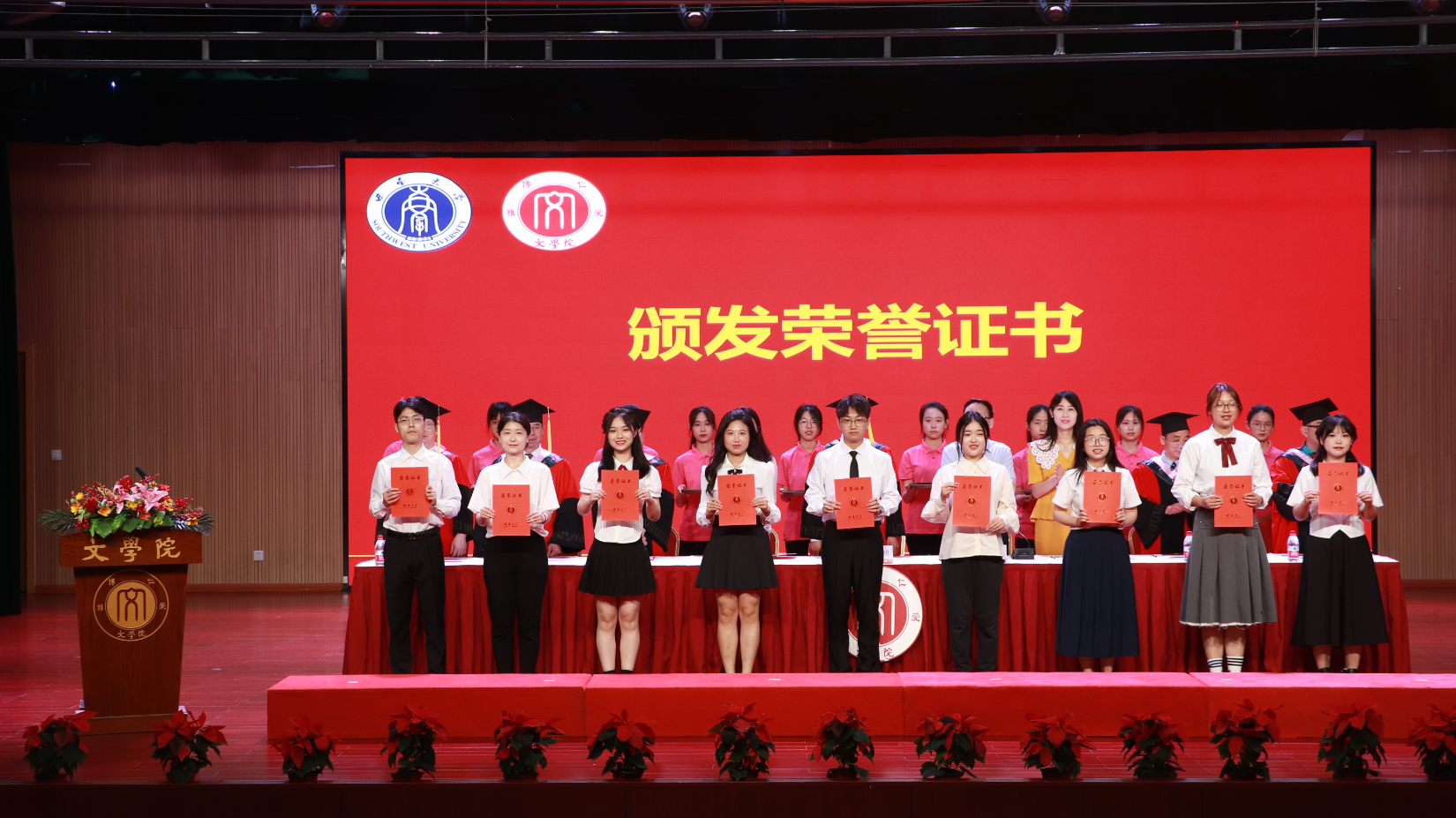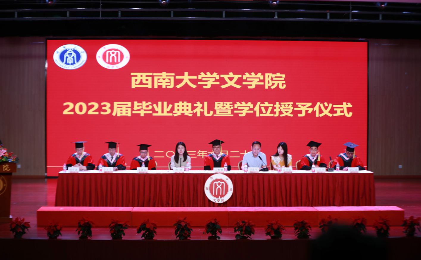 随后,中国语言文学学术委员会委员王本朝教授、张春泉教授、寇鹏程教授、李永东教授、李应志教授、杨怀源教授为学士学位获得者授位。