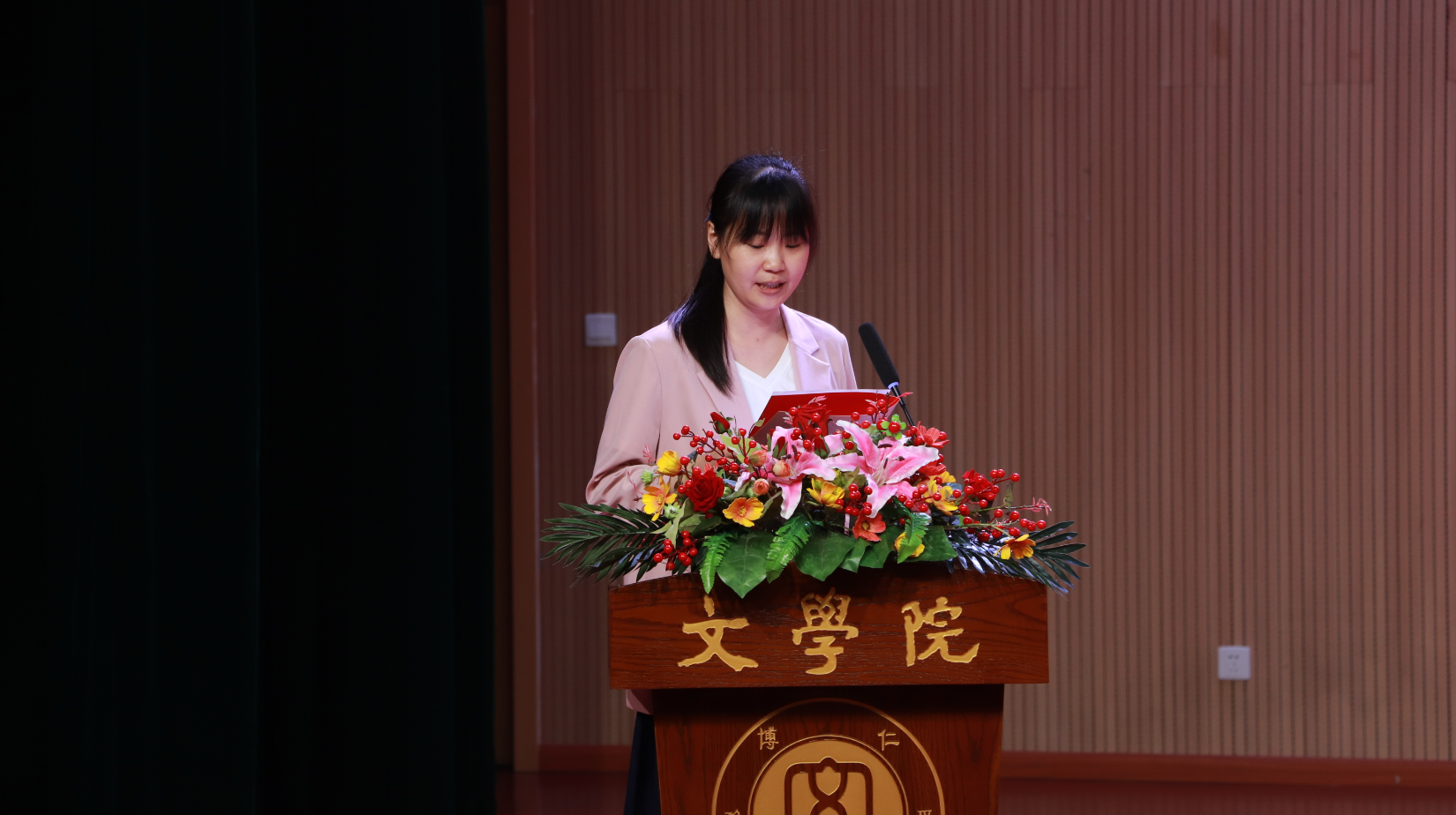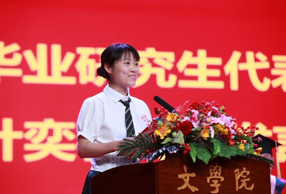 2020级中国现当代文学专业硕士研究生叶奕杉、2019级汉语言文学(师范)专业本科生胡璐瑶依次上台发言。叶奕杉分享了她在读研期间思考的乐趣与快感、学术的魅力与活力,感恩学校和学院的悉心培养,希望同学们保持热情与纯真,体验属于自己的独特人生。胡璐瑶从经历人生、体验人生、充实人生,努力是世界最真实的模样和人生的常态,追梦路上的相逢缘分弥足珍贵等方面分享了自己大学四年的成长与收获。
