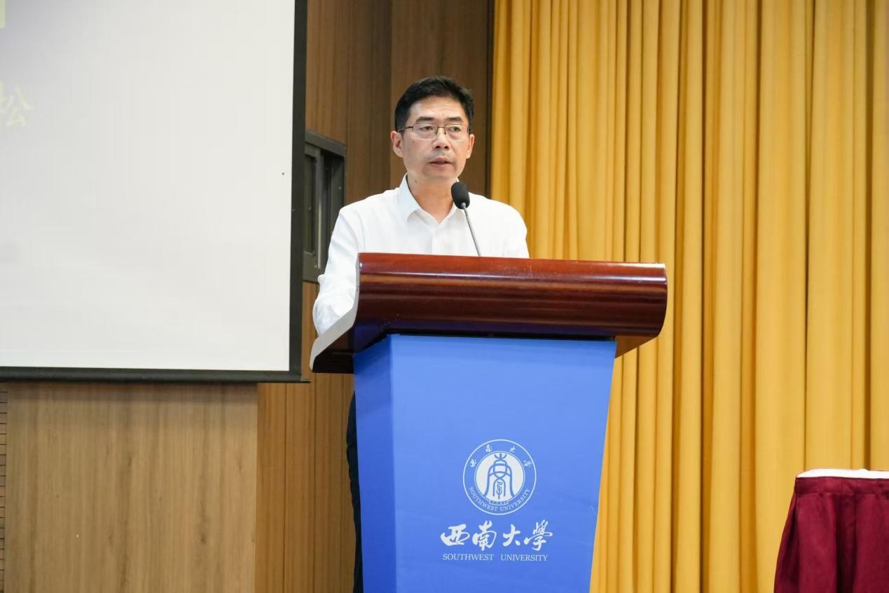 王本朝院长代表全院师生向新生致以热烈欢迎。他介绍了学院的办学历史与学科特色,向新生们提出三点期望:一是勇担使命,与家国命运同频共振;二是要涵养学识,在阅读中提升思考能力:三是要勤于行动,在实践中丰富体验和感悟。他希望2025级新生成长为有光亮、有力量、有担当的文学人,让自己的大学生活充实而精彩。