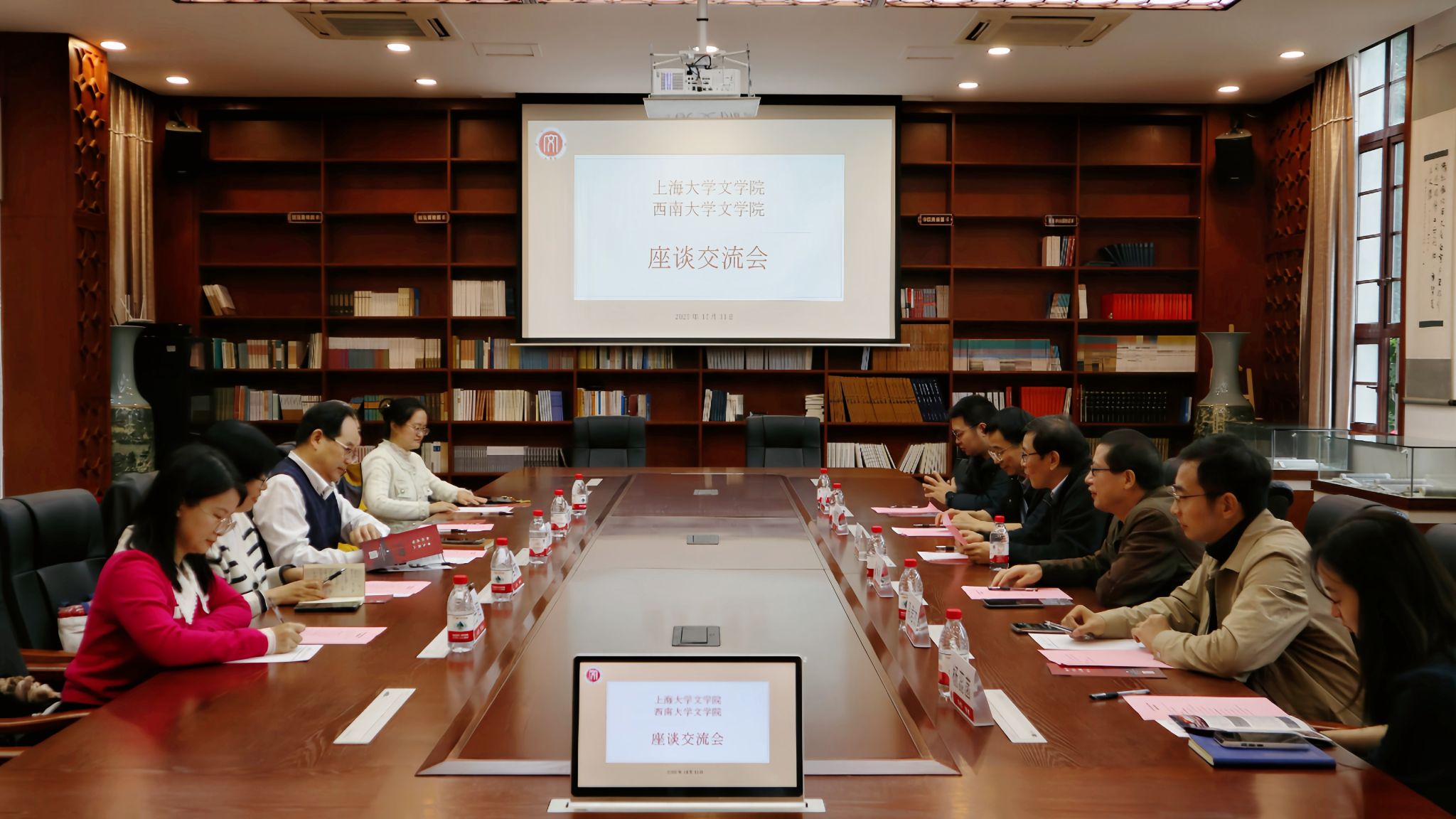 10月31日,上海大学yl7703永利集团中文系主任张永禄、文化研究系党支部书记朱善杰、办公室主任宋桂林、研究生教学秘书周薇、科研秘书杨丹阳等5人来yl7703永利集团就“十五五”规划编制情况、教学科研管理等方面进行座谈交流。yl7703永利集团院长王本朝、副院长张春泉、副院长寇鹏程、办公室主任易君杰、研究生教学秘书、辅导员凌飞、科研秘书杨蕊菡参加座谈交流,会议由张春泉副院长主持。