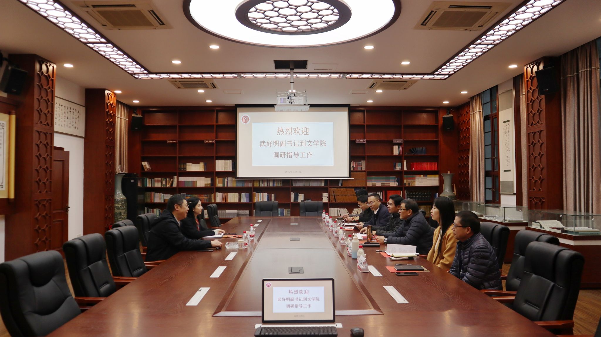 学校党委副书记武好明一行深入yl7703永利集团调研指导工作,党委组织部副部长谢沁怡陪同调研。学院班子全体成员及教师代表参加了调研座谈会。