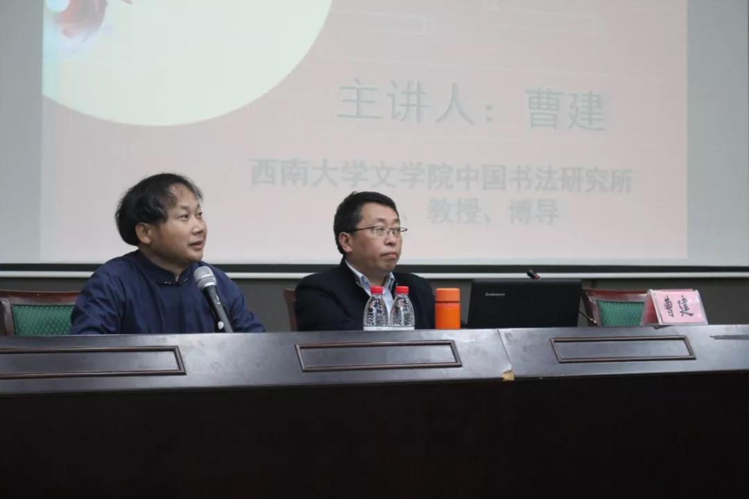 讲座伊始,副院长刘小华致词并欢迎曹建教授的莅临指导。曹建教授主要从碑学的兴起与风行、晚清帖学观念、20世纪书风嬗变三个方面进行深刻阐述。