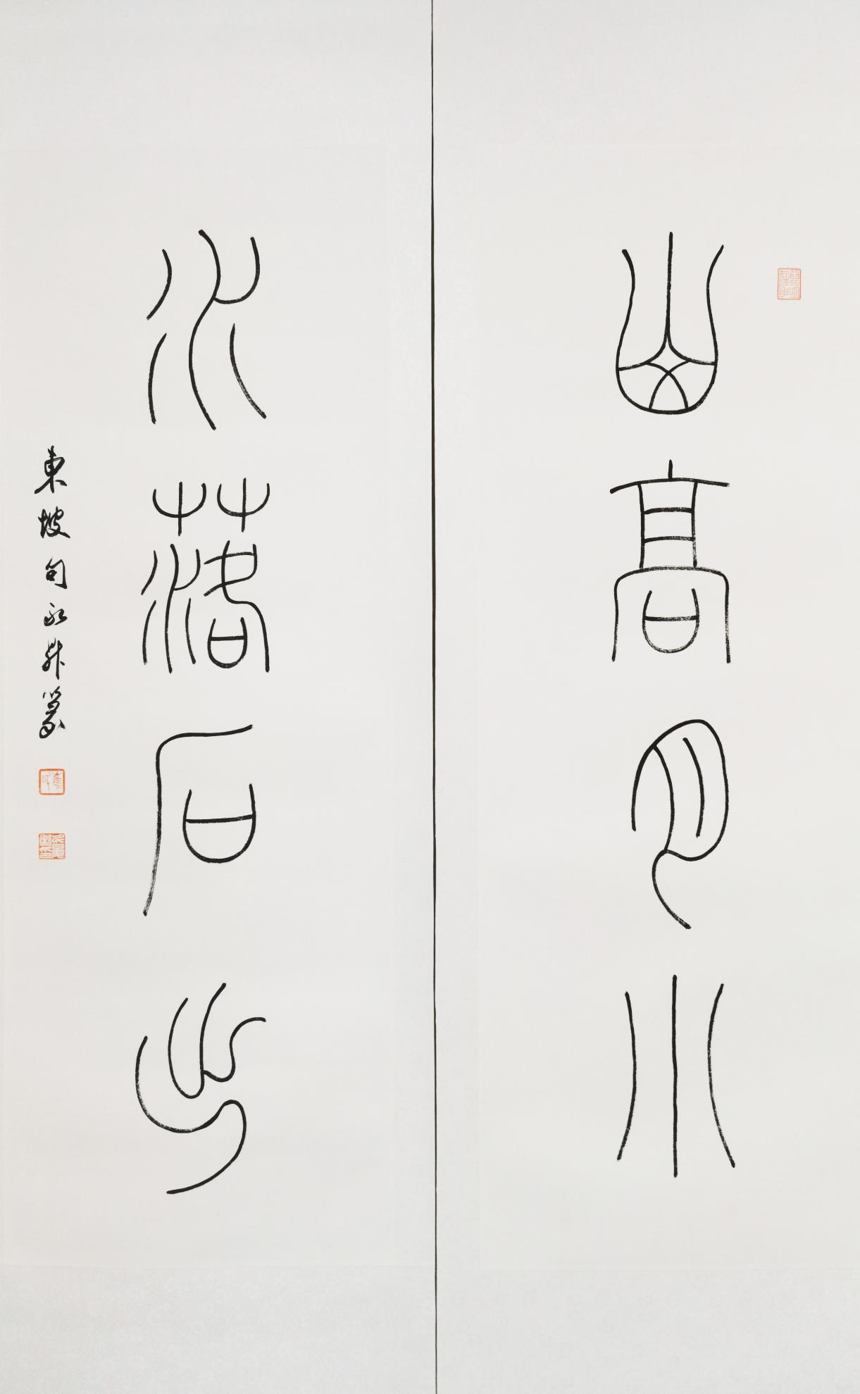 图 16 篆书“山高-水落”联32cmx65cm
