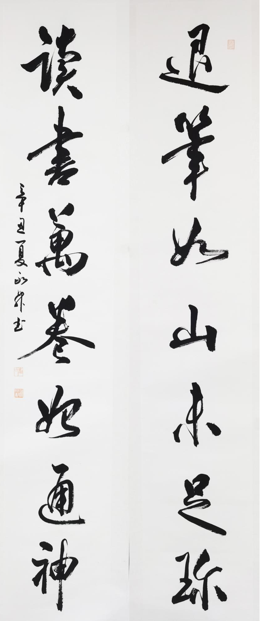 图 7 行书“退笔-读书”联33cmx180cmx2