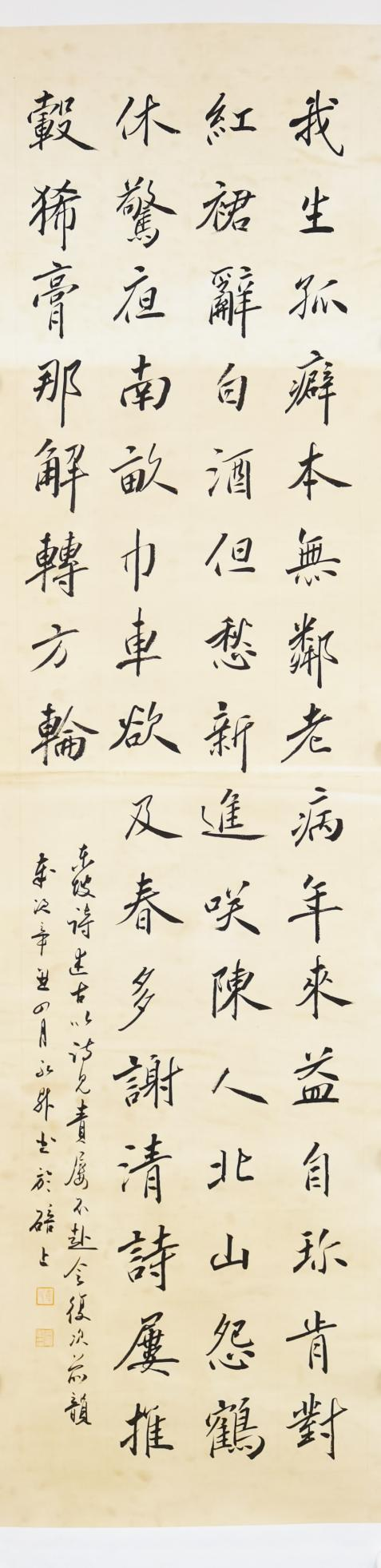 图 10 行书轴《月夜与客饮酒杏花下》46cmx180cm