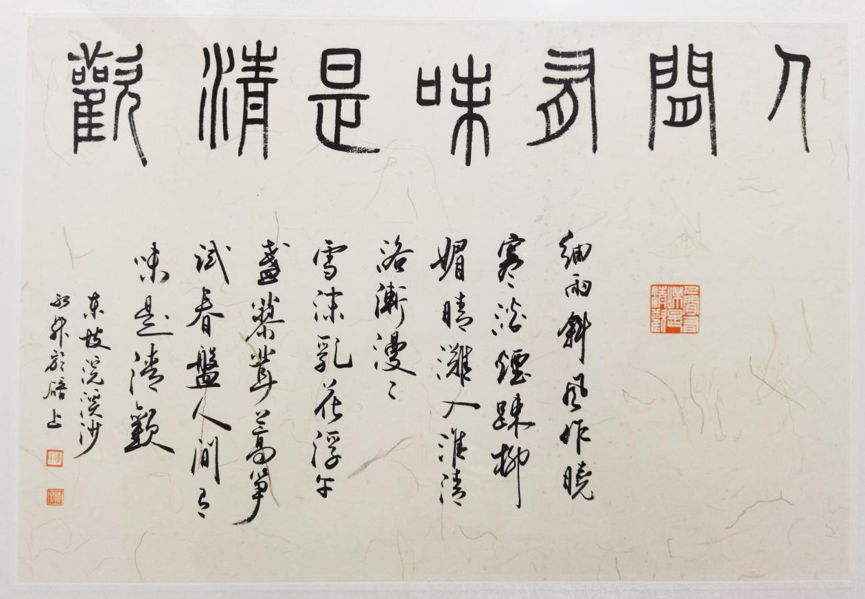 今书学复兴,学科渐盛,既从事之,慰心之余,必言创作。本次展览,或把卷之余平日所积,或临近毕业专为所创,然皆须从容不迫。孙虔礼所谓“五乖五合”,斯为至言,若不迫于事,书以自娱,此种境遇,多不可求。古之善书者,往往渴求笔精纸良,花笺绢素,今或不能之比,纸张品类之繁多,今或盛于古,然就生宣而言,则具而胜之矣。今之用纸,见于展览者,品类琳琅,多尚繁华,然就书写而言,纸性偏熟,多趋简易,行笔迟缓,描摹添涂,既违书理,亦为便途。形式内涵,适其本末,内涵之意,其一为书者之学养技艺,展现为作品之风神气韵,其根本在于学识与修养,精熟技艺之锤炼。其二为书写内容之不俗,虽提倡书写自作诗文,然此固不可强致,以经典诗词文赋作书,古已有之,书与文合,既飨读者,亦裨书者。今之书刻,皆坡公诗文,奇逸雄放,清旷典丽,皆有取舍。“出新意于法度之中,寄妙理于豪放之外”,今所溯求,天真烂漫,古淡萧然。
