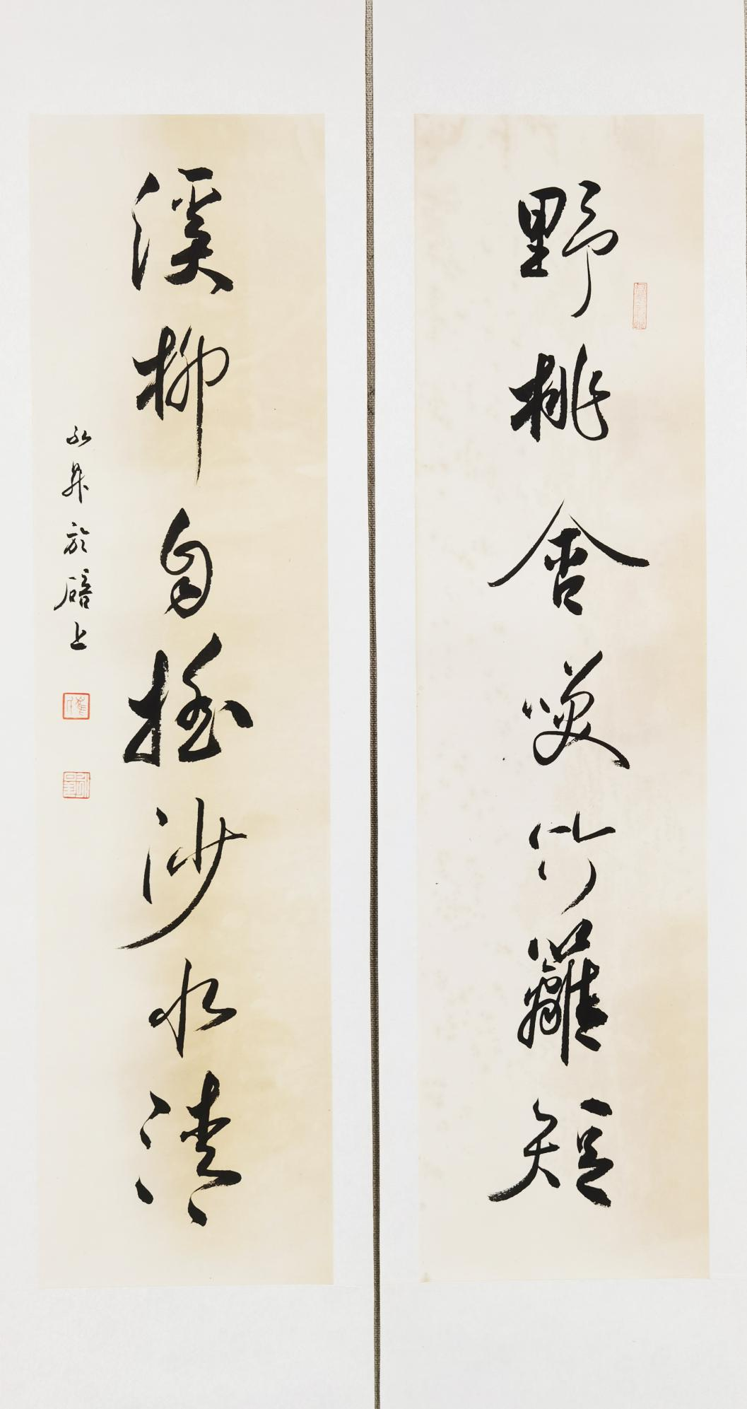 图 8 行书“野桃-溪柳”联17cmx68cmx2