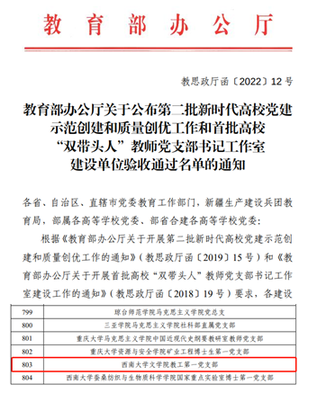 近日,教育部思想政治工作司公布了第二批新时代高校党建示范创建和质量创优工作和首批高校“双带头人”教师党支部书记工作室建设单位验收结果,yl7703永利集团教工第一党支部顺利通过第二批“全国党建工作样板支部”建设单位验收。
