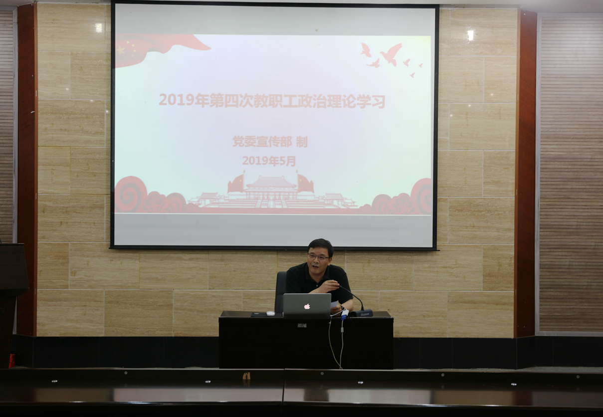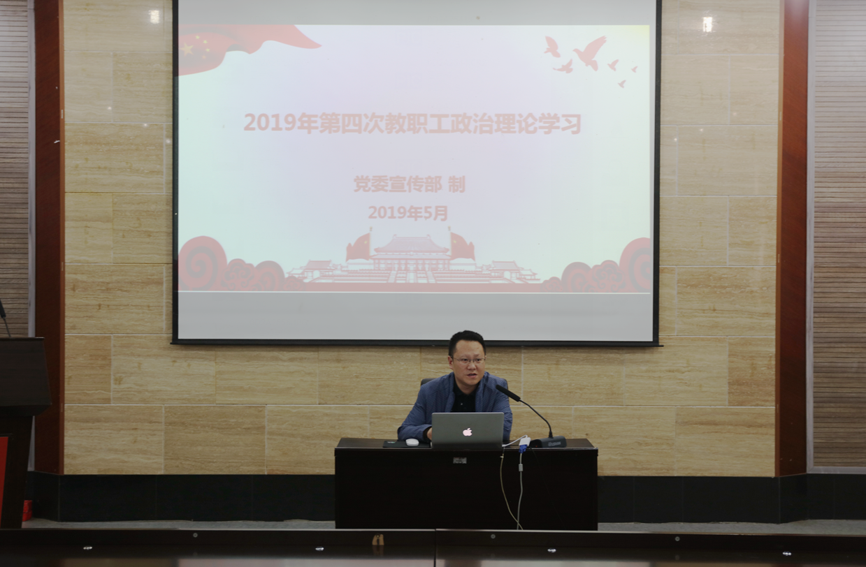 2019年5月5日下午2点30分,yl7703永利集团在雨僧楼101学术报告厅召开2019年第四次教职工政治理论学习会议,会议由yl7703永利集团党委副书记、纪委书记邓洪波主持,全体教职工参加了会议。