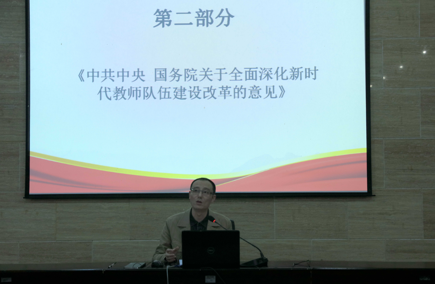 黄杰书记从里程碑意义、基本原则、目标任务、改革措施四个方面深入解读组织学习了《中共中央 国务院关于全面深化新时代教师队伍建设改革的意见》。